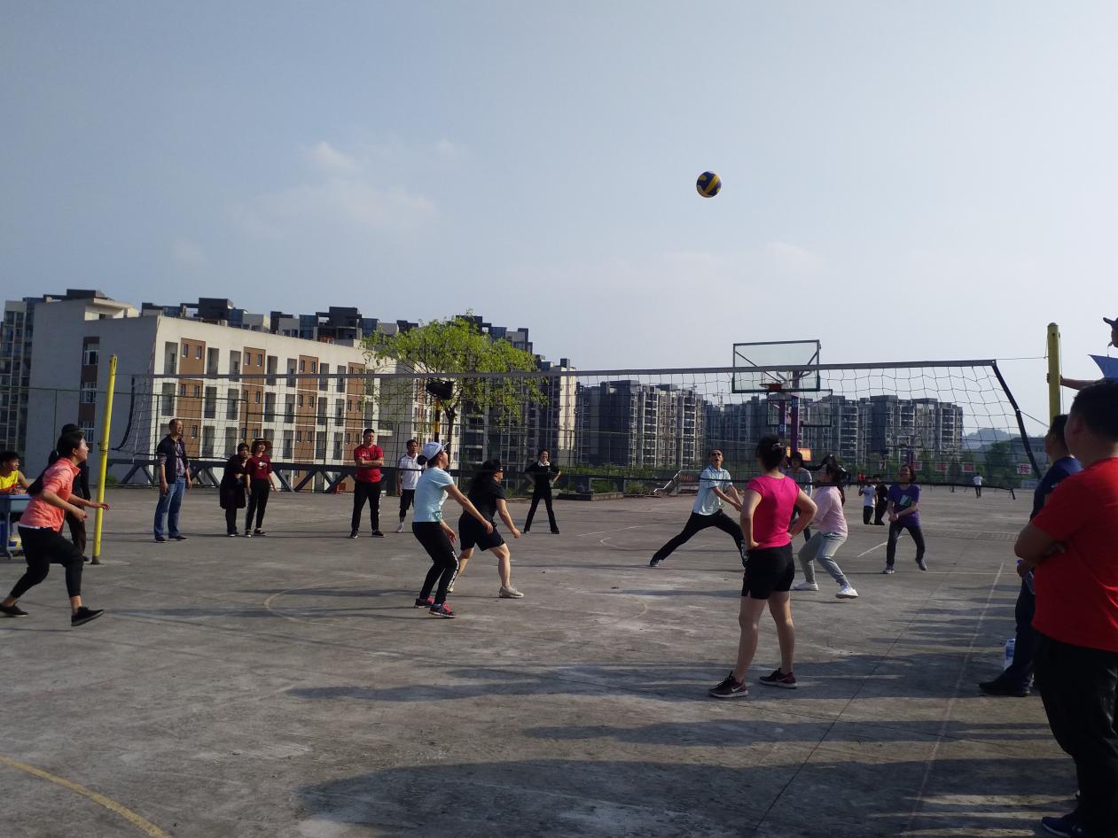 为全面贯彻落实党的十九精神,深入学习领会习近平总书记新时代中国特色社会主义思想,丰富广大教职工的校园生活,营造健康文明、积极向上的校园氛围,增强教师间的凝聚力和合作意识,学校工会主办了2019年春期教职工运动会。本届运动会历时一个月,共有两个赛项,即男女混合气排球赛和男子篮球赛。每个赛项均有处室联队、汽修、计应、旅游、经贸、机电工会小组6支参赛队伍,分成AB两组,采取小组循环赛制。