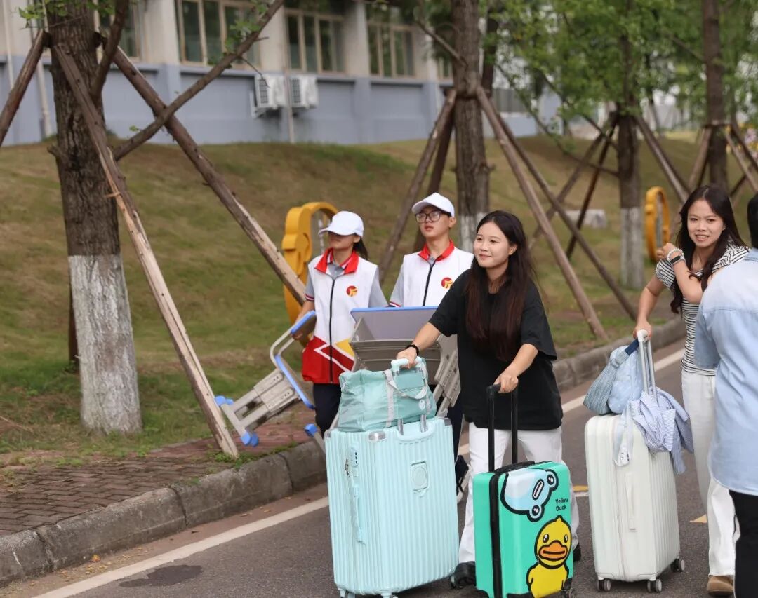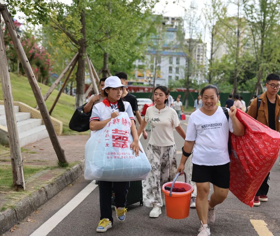 新生们怀揣着对未来的无限憧憬,陆续走进这片梦想起航的土地。校门口,一个个面带微笑的志愿者,为新同学们提供咨询和帮助。“同学,需要帮忙提行李吗?请跟我来,宿舍楼就在前面。”“同学,分班信息在这里查看,我来帮你找。”“来,这里有饮用水”一句句贴心的话语,让初来乍到的新生们瞬间感受到了家的温馨。