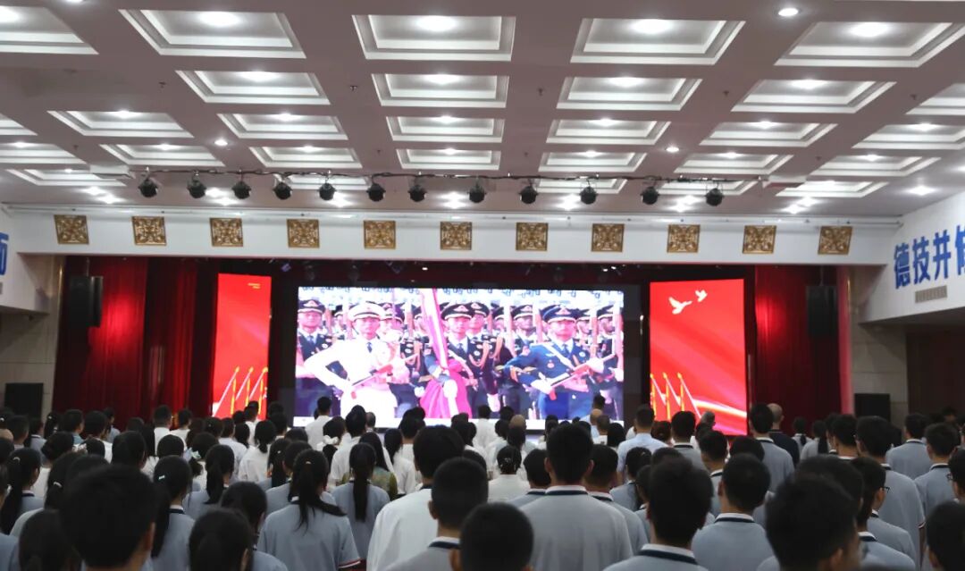 2025年9月3日,四川省宜宾市职业技术学校(宜宾技师学院)举行纪念中国人民抗日战争暨世界反法西斯战争胜利80周年爱国主义教育活动,组织全校师生集中观看阅兵式,共同回顾历史,展望未来。