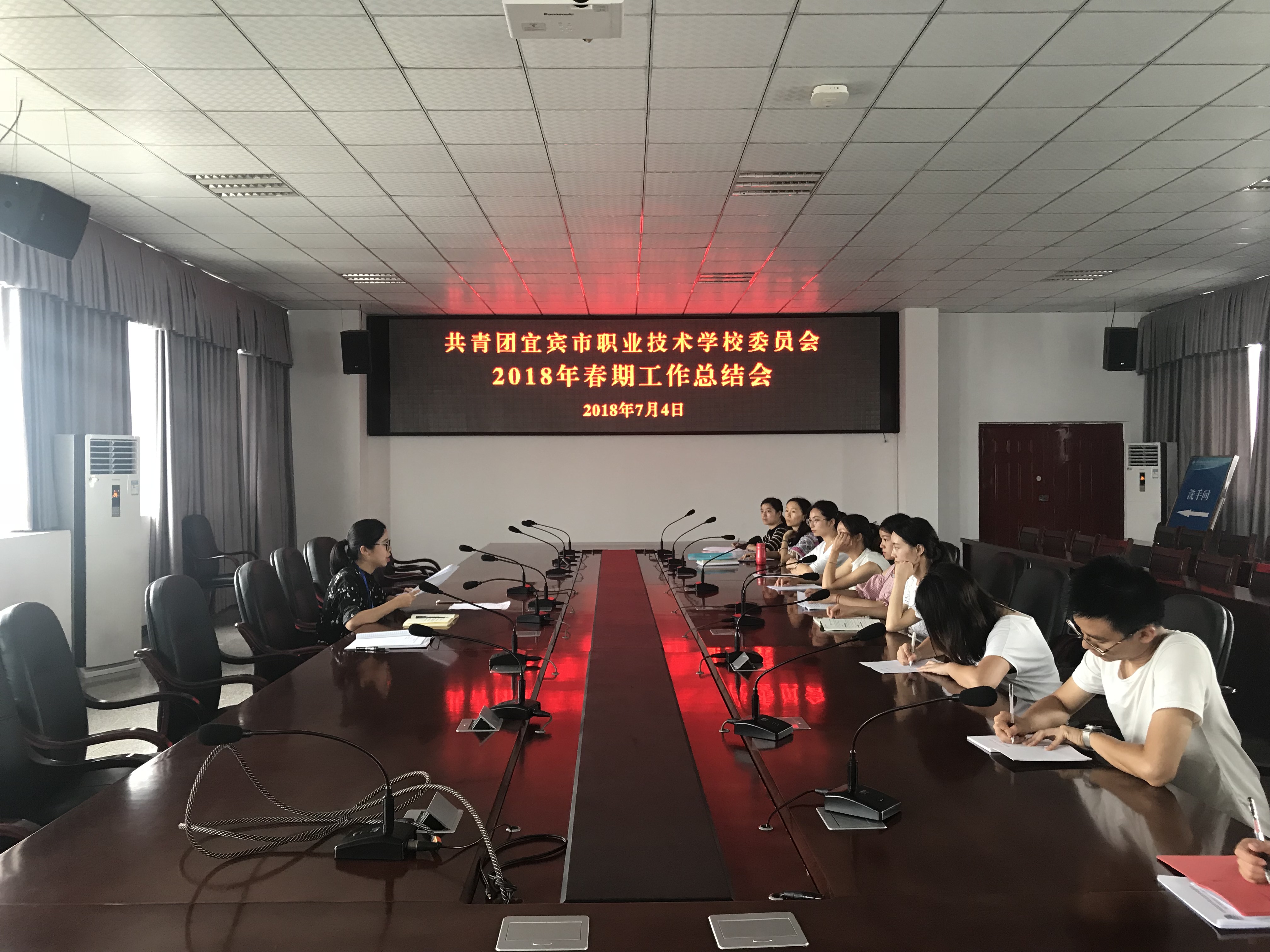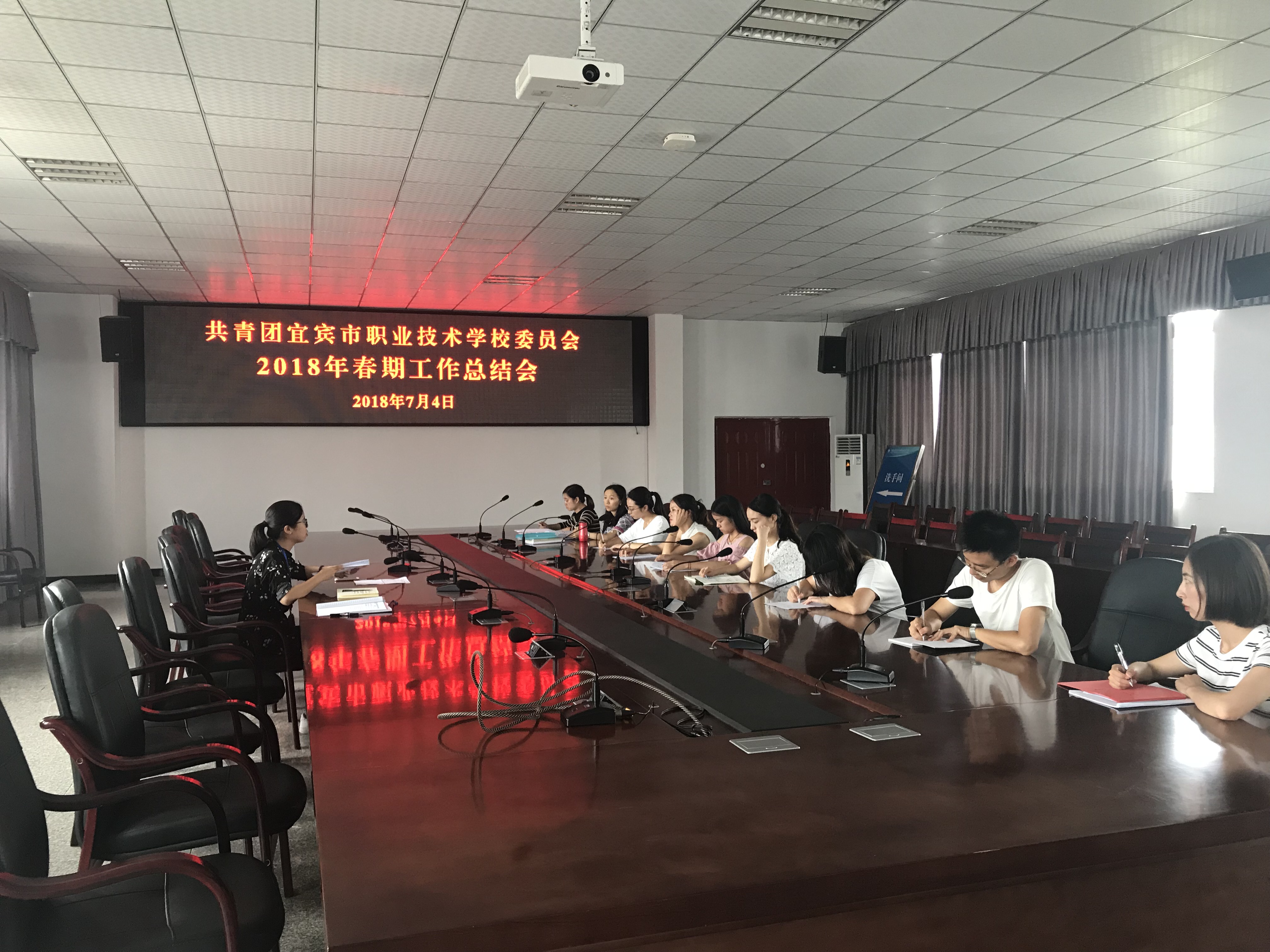 7月4日,我校团委召开了2018年春期工作总结会,团委副书记曾冰洁、团委干事彭钰和各专业部团总支书记参加了会议。