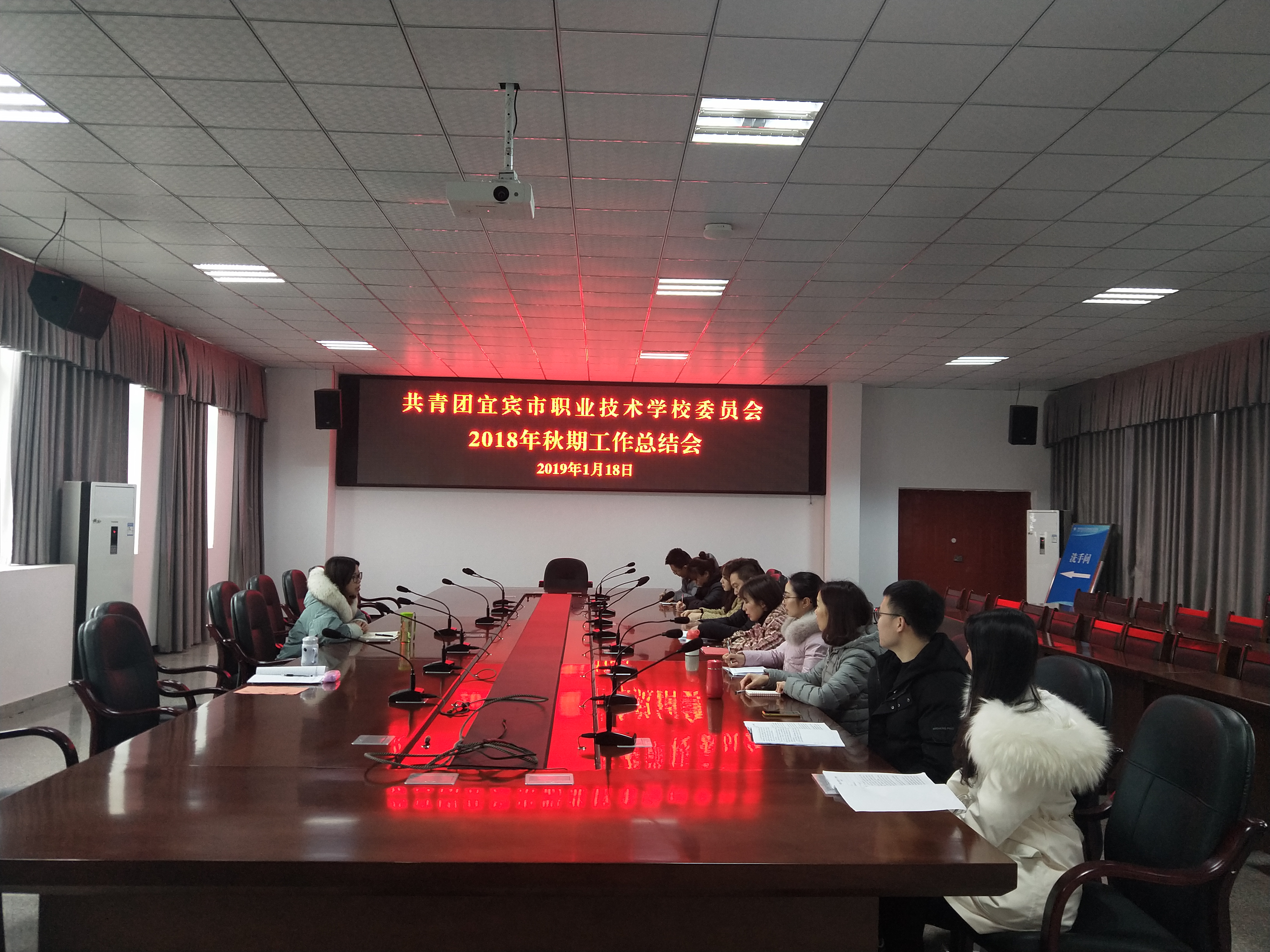 1月18日上午,我校团委在乐业楼501会议室召开了2018年秋期工作总结会。校团委副书记曾冰洁、干事王梅、教工团支部书记彭钰,以及各个专业部团总支书记参加了此次会议。
