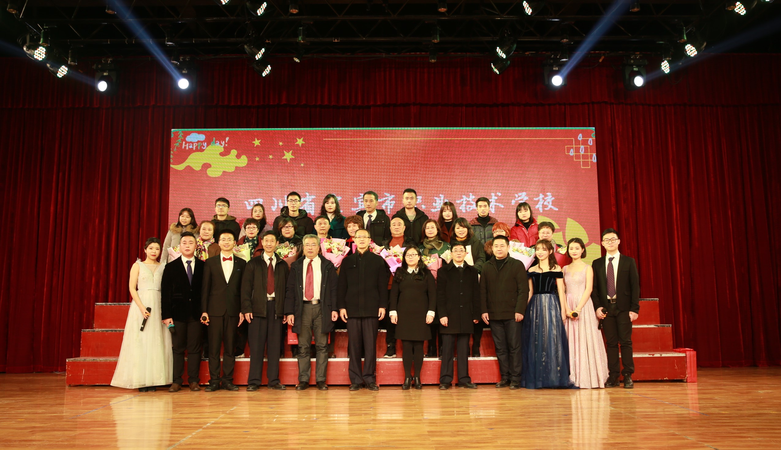 “旺狗报喜辞旧岁,金猪纳福迎春来”,为庆祝祖国改革开放40周年的伟大成就,回顾和总结学校一年的工作,迎接新春佳节,宜宾市职业技术学校“2019年迎新春联欢会”于2019年1月25日下午在大湾校区克俭堂举行,全校教职工及家属参加了本次活动。