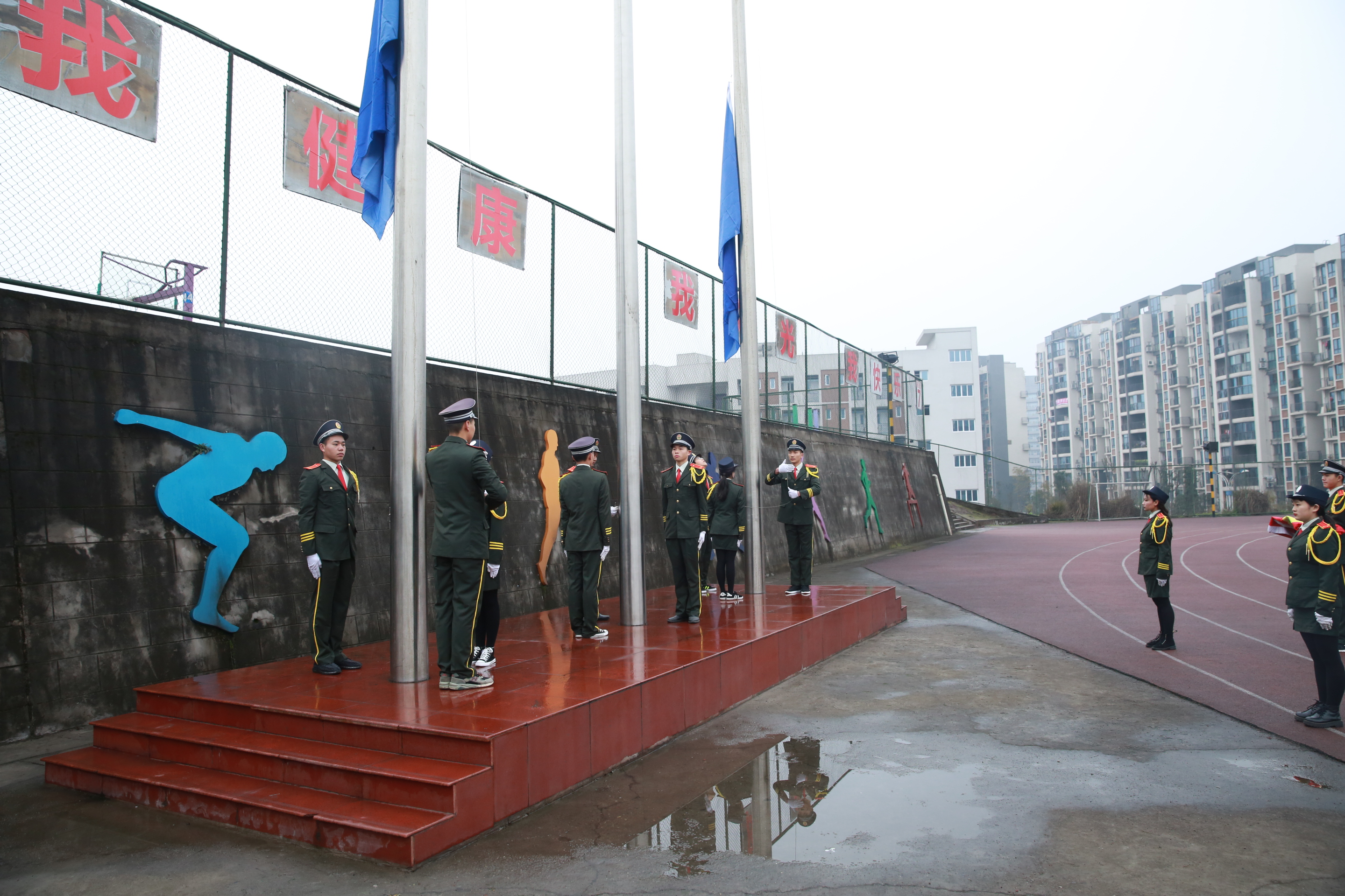 开学典礼在庄严而嘹亮的国歌声中徐徐拉开序幕。