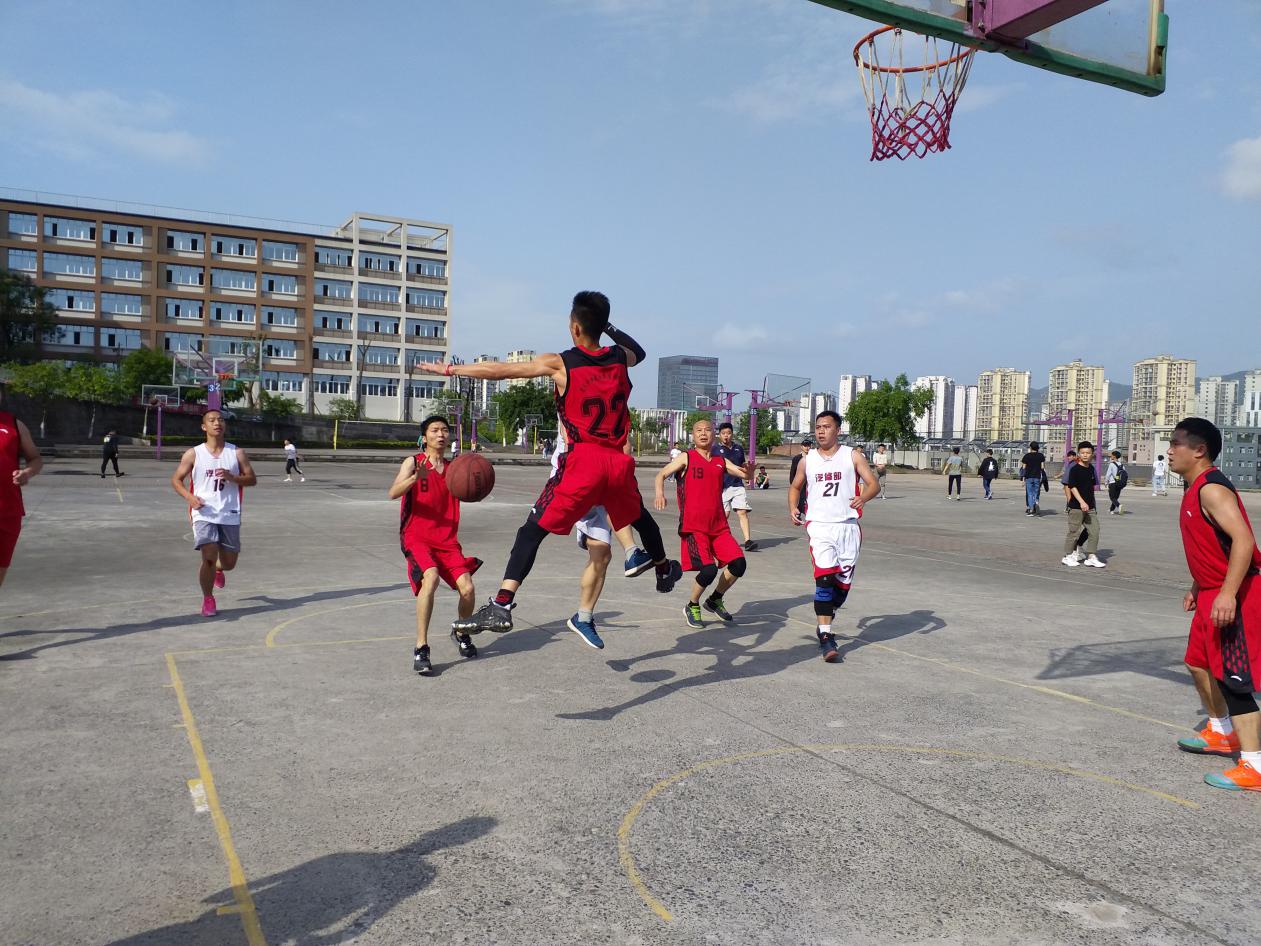 为全面贯彻落实党的十九精神,深入学习领会习近平总书记新时代中国特色社会主义思想,丰富广大教职工的校园生活,营造健康文明、积极向上的校园氛围,增强教师间的凝聚力和合作意识,学校工会主办了2019年春期教职工运动会。本届运动会历时一个月,共有两个赛项,即男女混合气排球赛和男子篮球赛。每个赛项均有处室联队、汽修、计应、旅游、经贸、机电工会小组6支参赛队伍,分成AB两组,采取小组循环赛制。