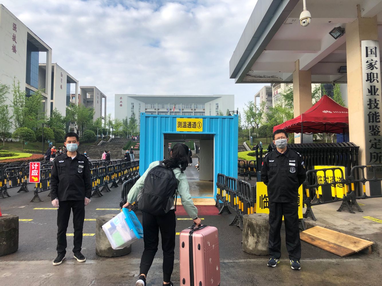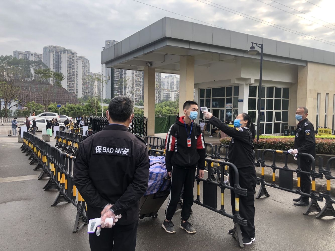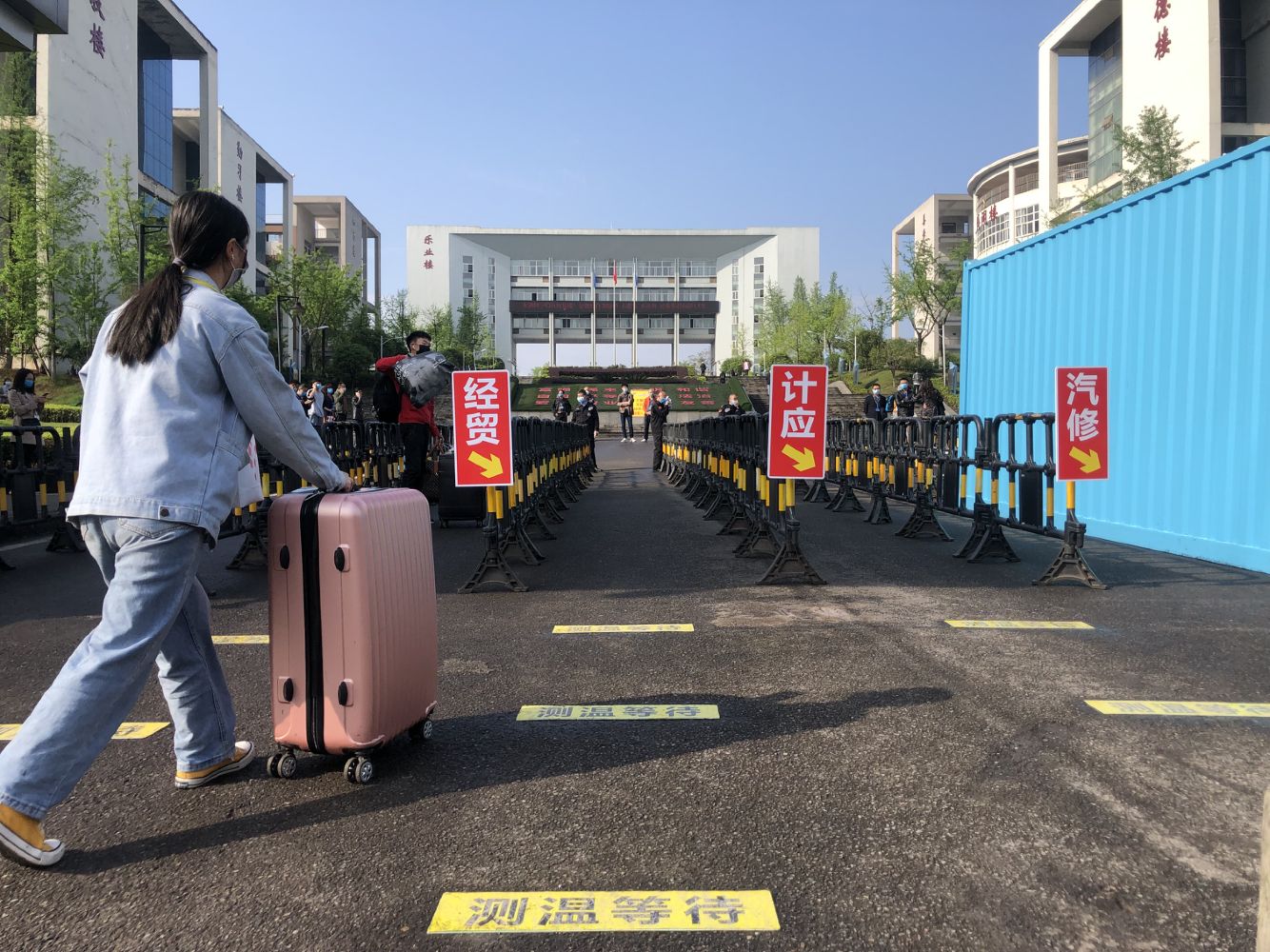4月10日,伴着期待与万全的准备,我校最后一批19级同学顺利返校复课。在学校大门,到校学生统一佩戴口罩,在指定区间隔离1米的距离,依次通过测温通道测量体温,体温正常的师生才能进入校园。