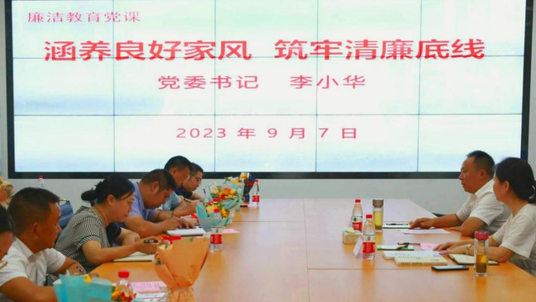党委书记李小华以《涵养良好家风,筑牢清廉底线》为题,为大家讲授了一堂主旨鲜明、思想深刻的廉洁教育党课。李书记从习近平总书记关于弘扬中华传统美德,加强家风建设的重要论述谈起,指出党员干部的家风,不是个人小事和家庭私事,而是事关党风政风和社会风气的大事,要求党员干部要修好“家风建设”这门必修课,要做家风建设的表率,要和家人常吹“廉洁风”、算好“廉洁账”、守住“廉洁门”,以实际行动带领家人遵纪守法,引导家人学廉倡廉践廉,把家庭建设成温馨、幸福、健康的“安全港”,让优良家风源远流长、薪火相传。