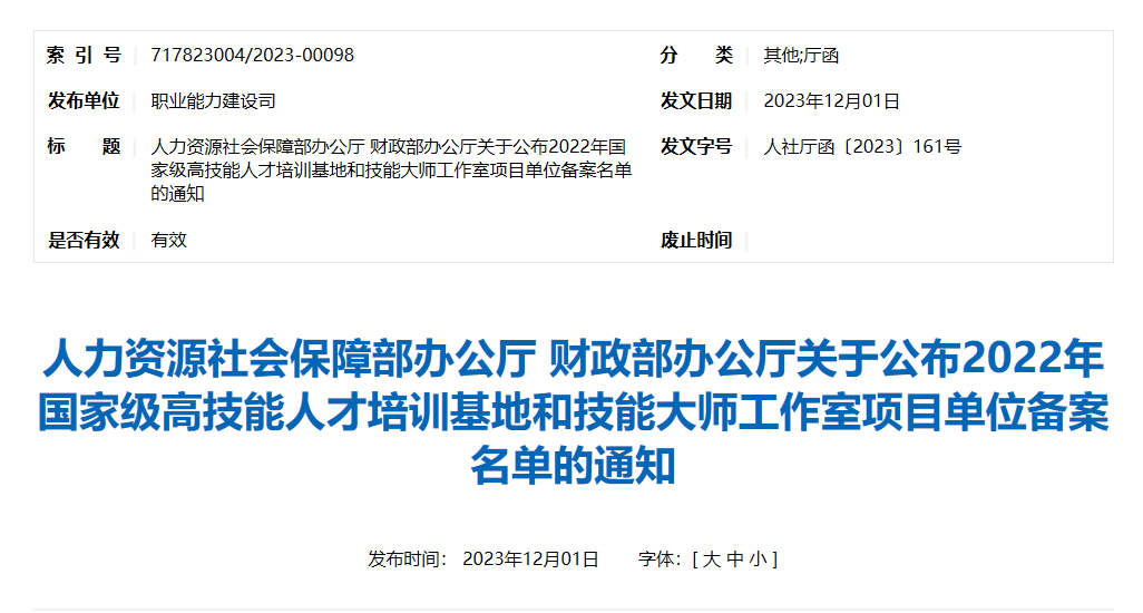 近日,人力资源社会保障部办公厅、财政部办公厅联合公布了2022年国家级高技能人才培训基地名单,四川省共有5个申报单位入选,宜宾技师学院在众多申报单位中脱颖而出,成功获得A档备案。这一成绩的取得,是我院对宜宾深化产教融合改革,高质量建设国家产教融合示范市的进一步落实和推进。