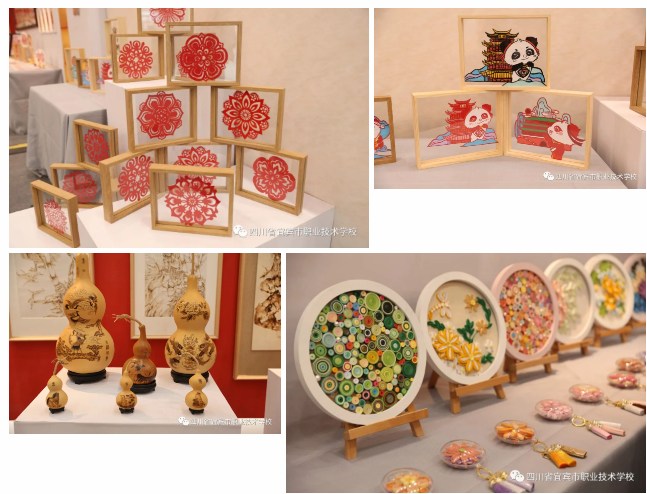12月22日—24日,宜宾市首届“追光逐梦 向美而行”长江首城中小学生体育艺术节“动创空间”美术劳动教育成果展在宜宾国际会展中心举办!宜宾市职业技术学校在本次教育成果展中共有工业机器人、食品雕刻、李庄白肉、西式面点、电子商务(乡村振兴)、咖啡调饮、烙画、衍纸手工等12个项目参展,有效展示了我校“以美润心”“以劳健心”的教育成果。