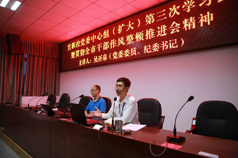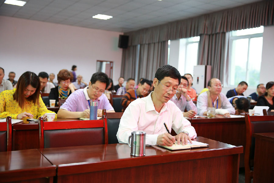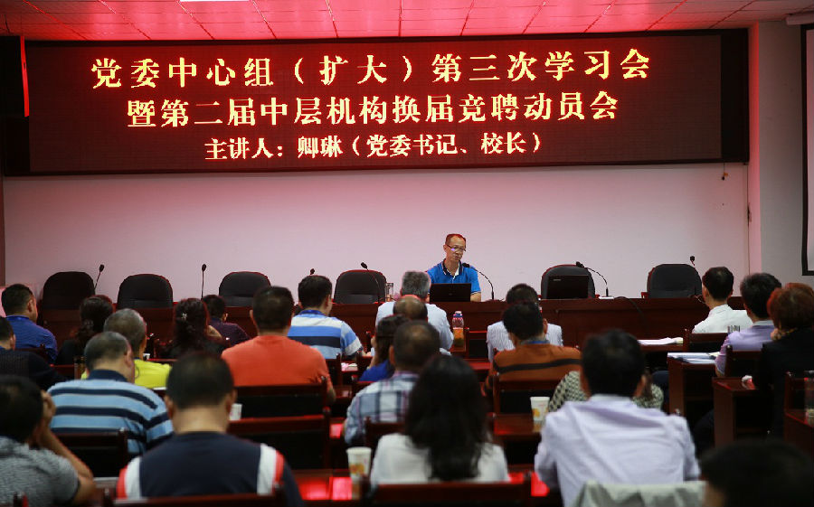 6月15日,校党委召开中心组(扩大)学习会,专题学习贯彻省第十一次党代会精神。市第五届党代表、党委委员、副校长黄俊洪领学了会议精神,党委书记、校长卿琳主持会议。