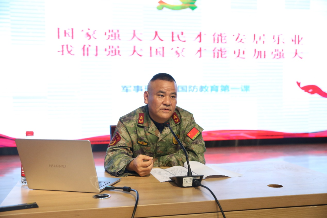 最后,彭刚华同志以2021年中美战略对话会上中央外事委员会主任杨洁篪的讲话鼓励学生,让学生感受并见证到国家强大起来的决心与意志、骨气与底气。同时也愿学生们能努力学习科学文化知识,增强自身素质,为将来投身国防事业、保卫祖国安全做好准备。