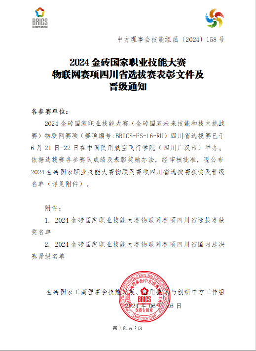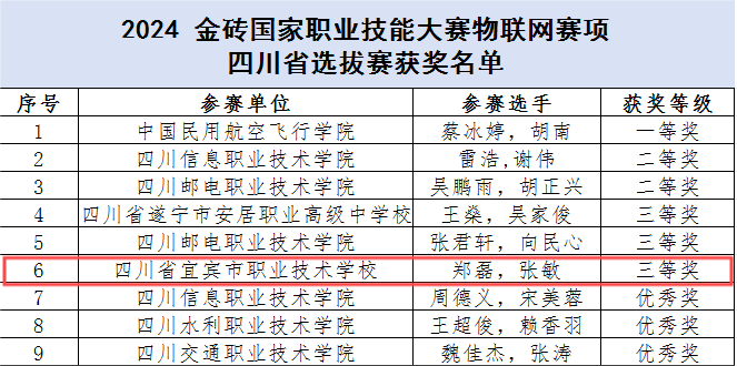 2024金砖国家职业技能大赛物联网赛项四川省选拔赛于6月21日- 22 日在中国民用航空飞行学院举办。本次大赛汇聚了四川省中高职院校物联网专业的9支精英队伍,仅有2支来自中职学校的队伍。通过激烈的比赛,我校信息工程系张敏老师和郑磊老师凭借出色的技术技能和良好的职业素养,勇夺三等奖。