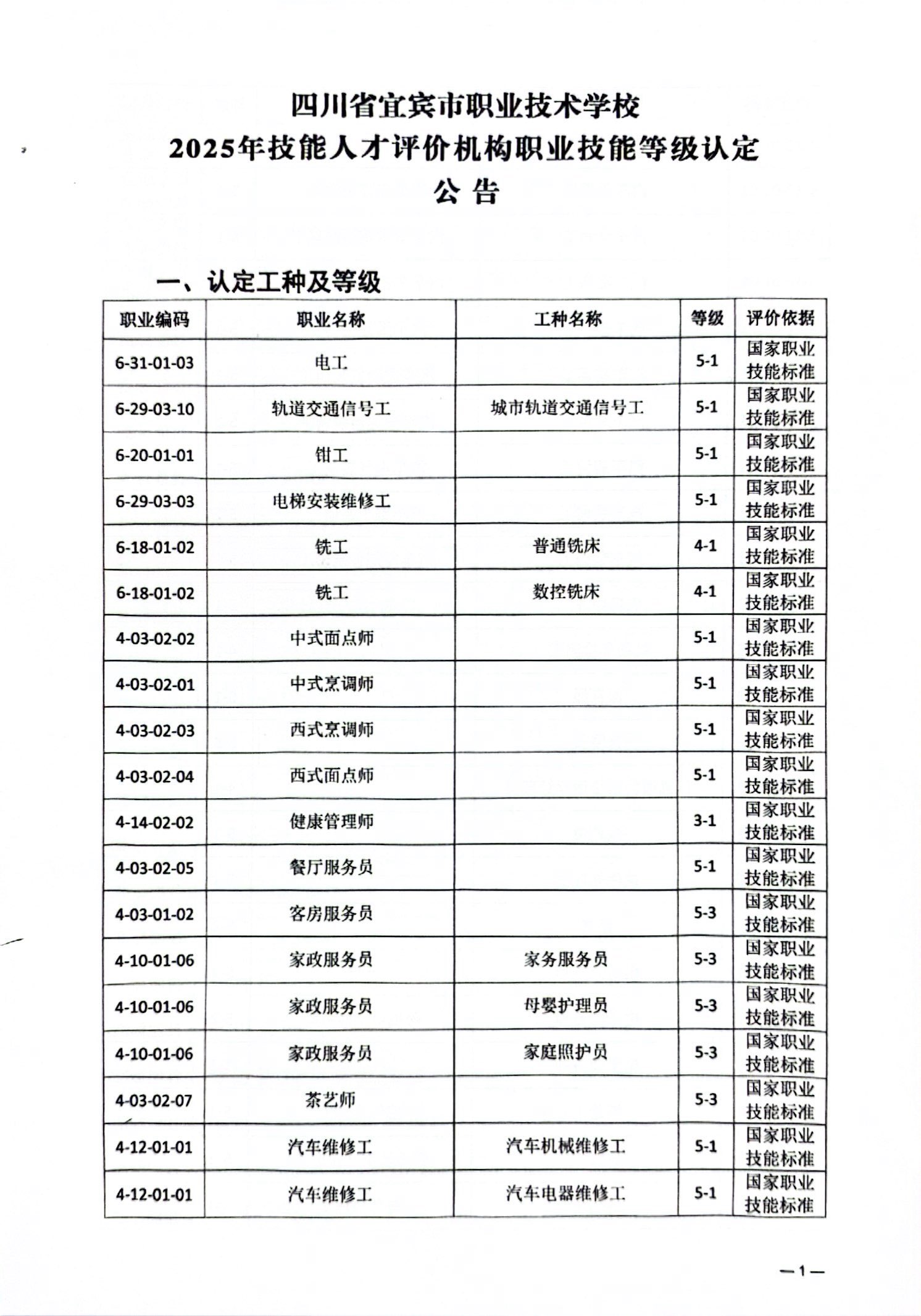 宜职校2025年技能人才评价机构职业技能等级认定公告