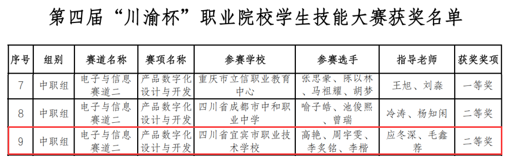 喜讯传来,我校在第四届“川渝杯”职业技能大赛中再创辉煌!我校23级7班李楷、24级11班李炙铭、22级1班高艳以及23级6班周宇雯四位同学,在产品数字化设计与开发赛项中,以卓越的表现荣获团体二等奖!