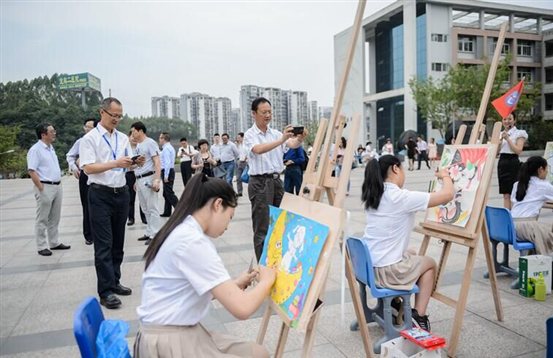 5月17日,市教体局周泽高总督学、职成教科林丽科长陪同2016年四川省职业教育工作会的代表60余人来到我校参观视察, 对我校的建设发展给予帮助和指导。