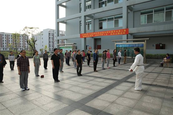 为丰富我校“五一”活动内容,倡导健康生活、快乐工作,增进教职工间沟通联系,积极构建和谐校园,4月13日,由校工会牵头举办的太极拳兴趣班在乐业楼一楼正式开班。