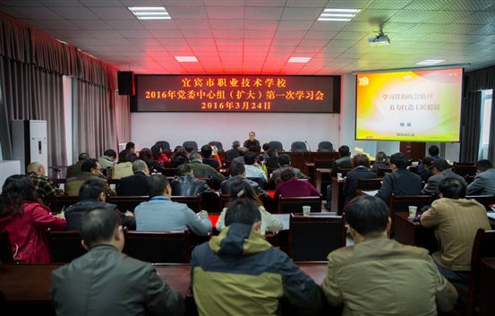 3月24日下午,我校2016年党委中心组(扩大)第一次学习会在乐业楼五楼会议室召开。党委书记、校长卿琳作《学习贯彻两会精神,着力打造工匠摇篮》主题报告,中层以上干部参加学习会。