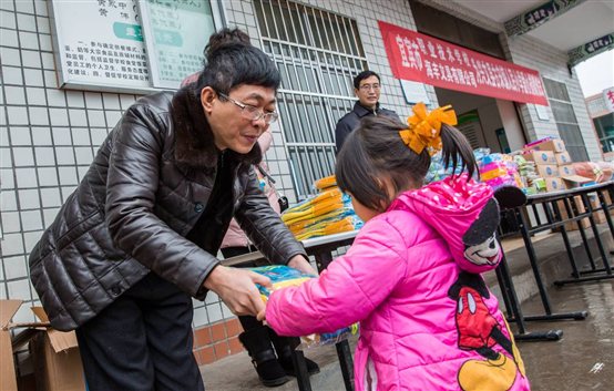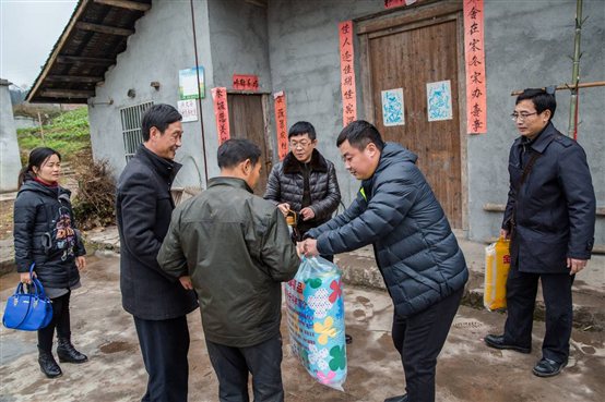 会后进行了对人民村小的“爱心捐赠”活动,参会的各位领导分别为村小幼儿班的学生发放了“爱心书包”,宜宾市海丰文化用品有限公司总经理吴定海为村小捐赠了价值5000元的文化体育用品。捐赠仪式结束后,何忠前副校长、纪委吴书记,走访慰问了结对帮扶的12户贫困户,送上了米、油、棉被等慰问物资,让困难群众过上一个欢乐、祥和的春节。