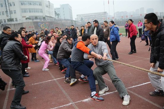 在2016年元旦节即将来临之际,为辞旧迎新,学校工会组织了丰富多彩的教职工运动会。此次“迎新”运动会于2015年12月21日下午拉开帷幕,共有专业部、处室联队6支参赛队伍,有围棋等4个单项比赛项目,跳绳等2个集体比赛项目,设单项奖、集体奖及最佳组织奖。运动会于29日下午圆满结束,经过激烈的角逐较量,旅游工会获得跳绳集体项目第一名,机电工会获得拔河比赛第一名,党委书记、校长卿琳、工会主席吴开泉为获奖集体和个人颁奖。