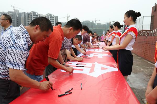 市领导陈政同志在大会上作了重要讲话,指出了当前禁毒工作面临的严峻形势,要求学校加强禁毒教育和宣传,筑牢禁毒防线,为学生健康成长创造良好的环境;党委书记、校长卿琳同志为同学们上了禁毒教育一堂课,对毒品的危害、如何预防毒品作了生动的讲解;经贸部吴敏同学作了“珍爱生命·远离毒品”的演讲;全校师生在国旗下举行了庄严宣誓:“我是中华儿女,不忘鸦片祸国殃民,牢记历史使命,从我做起,以抵制毒品为荣,以吸毒贩毒为耻!积极参与禁毒斗争,为人生美好,为家庭幸福,为国家安宁,为社会和谐,我立誓言:珍爱生命,永不沾毒!”