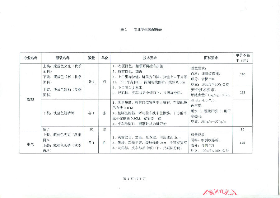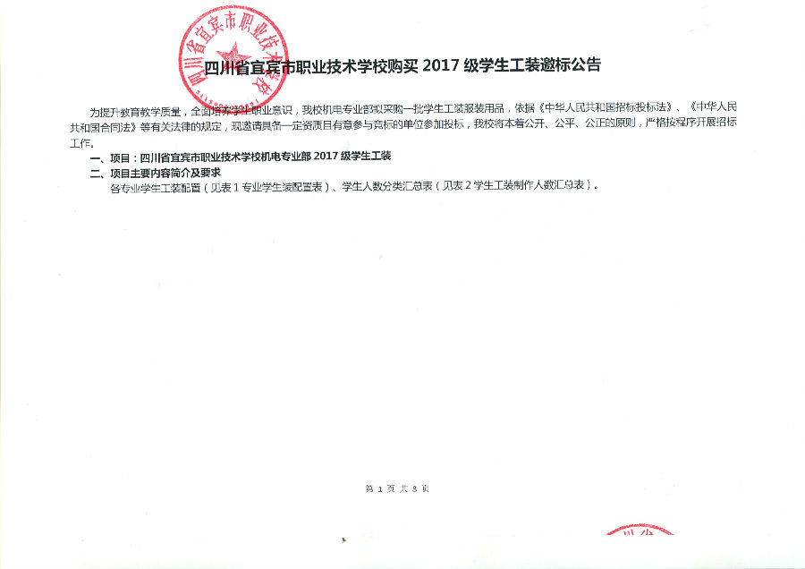 四川省宜宾市职业技术学校2017级学生工装邀标公告(机电)