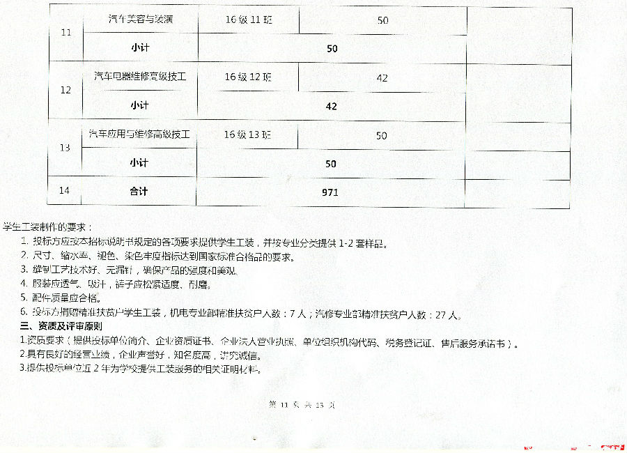 宜职校机电、汽修2016级学生工装评标结果公示