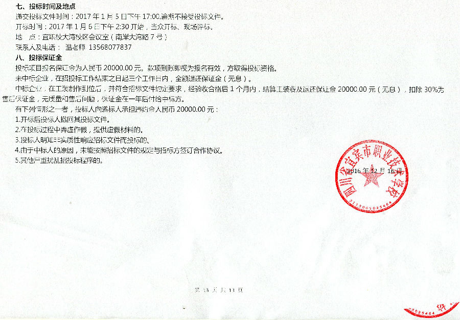 四川省宜宾市职业技术学校旅游专业部购买2016级学生工装邀标公告