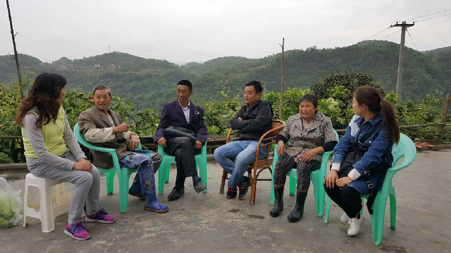 兴文县扶贫移民局罗光洁局长、邹小罡副局长、我校驻村第一书记张畅、宜职校四支部党员同志们与“村两委”进行了座谈,详细了解了该村扶贫攻坚工作的整体推进情况、特别是遇到的困难,经贸专业的党员同志们表态愿意发挥本专业的优势,为村集体经济出谋划策。