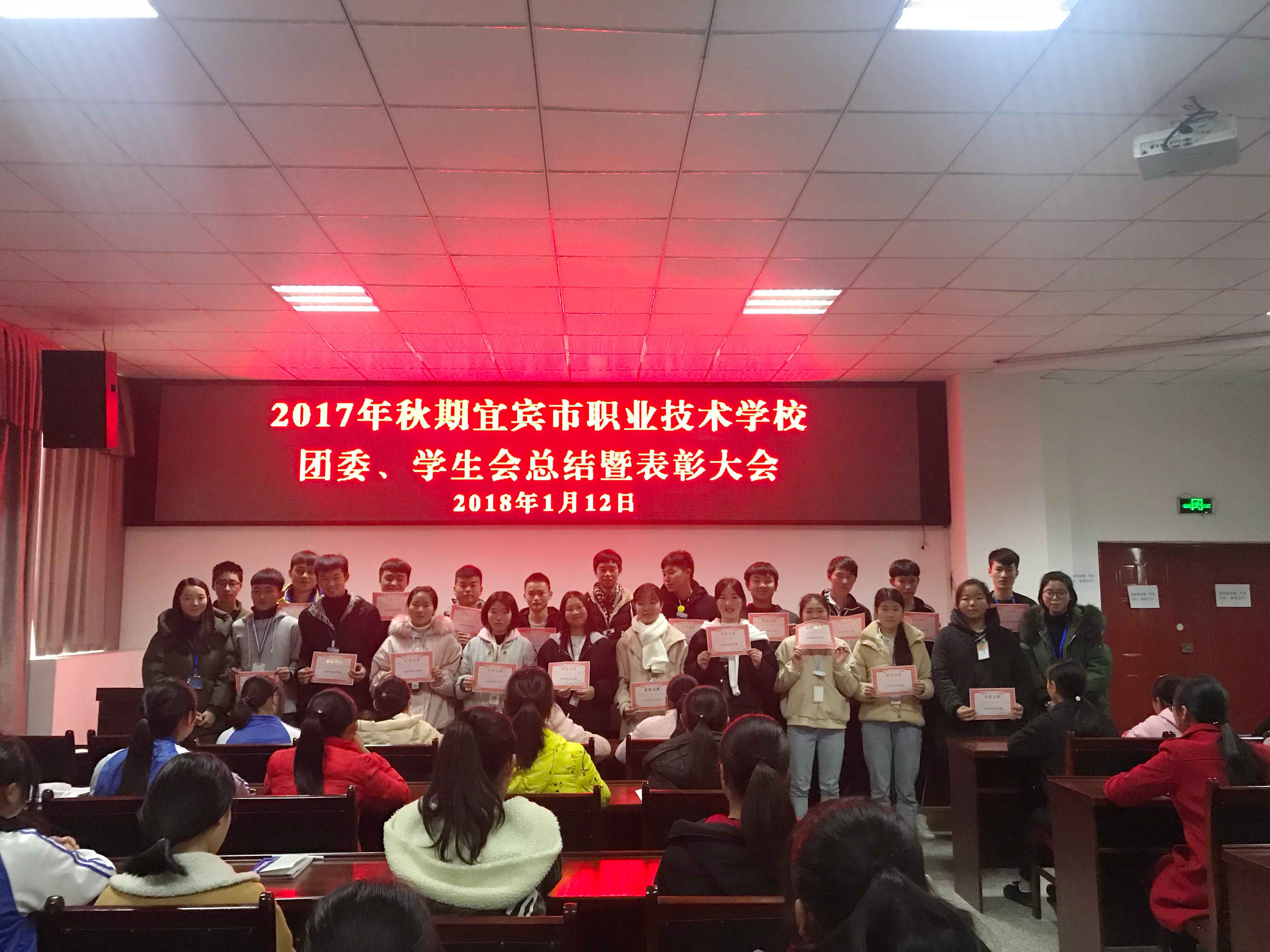 1月12日中午,我校团委、学生会2017年秋期工作总结暨表彰大会在学校会议室召开。校团委曾冰洁老师、彭钰老师及100余名学生代表参加会议。