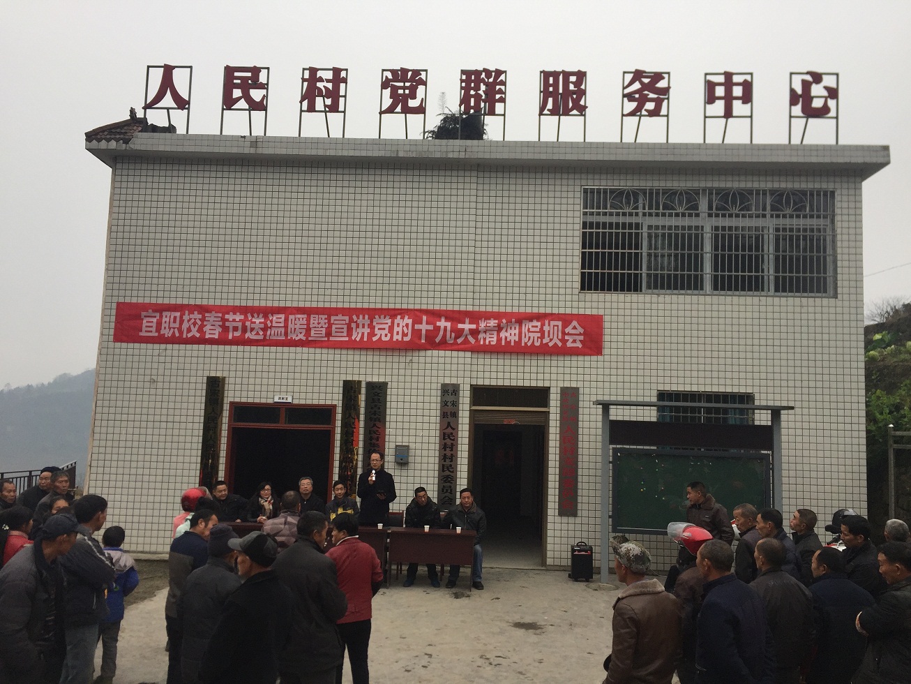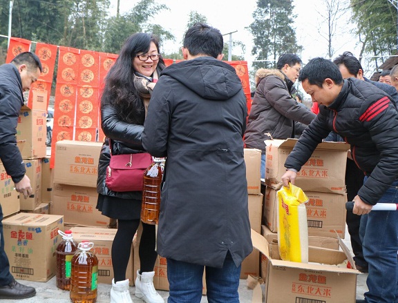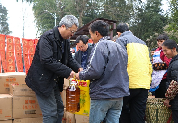 2018年2月1日,党委书记、校长卿琳带领学校党政班子成员和学校民盟、九三学社负责人到兴文县古宋镇人民村开展宣讲党的十九大精神暨 新春送温暖活动。