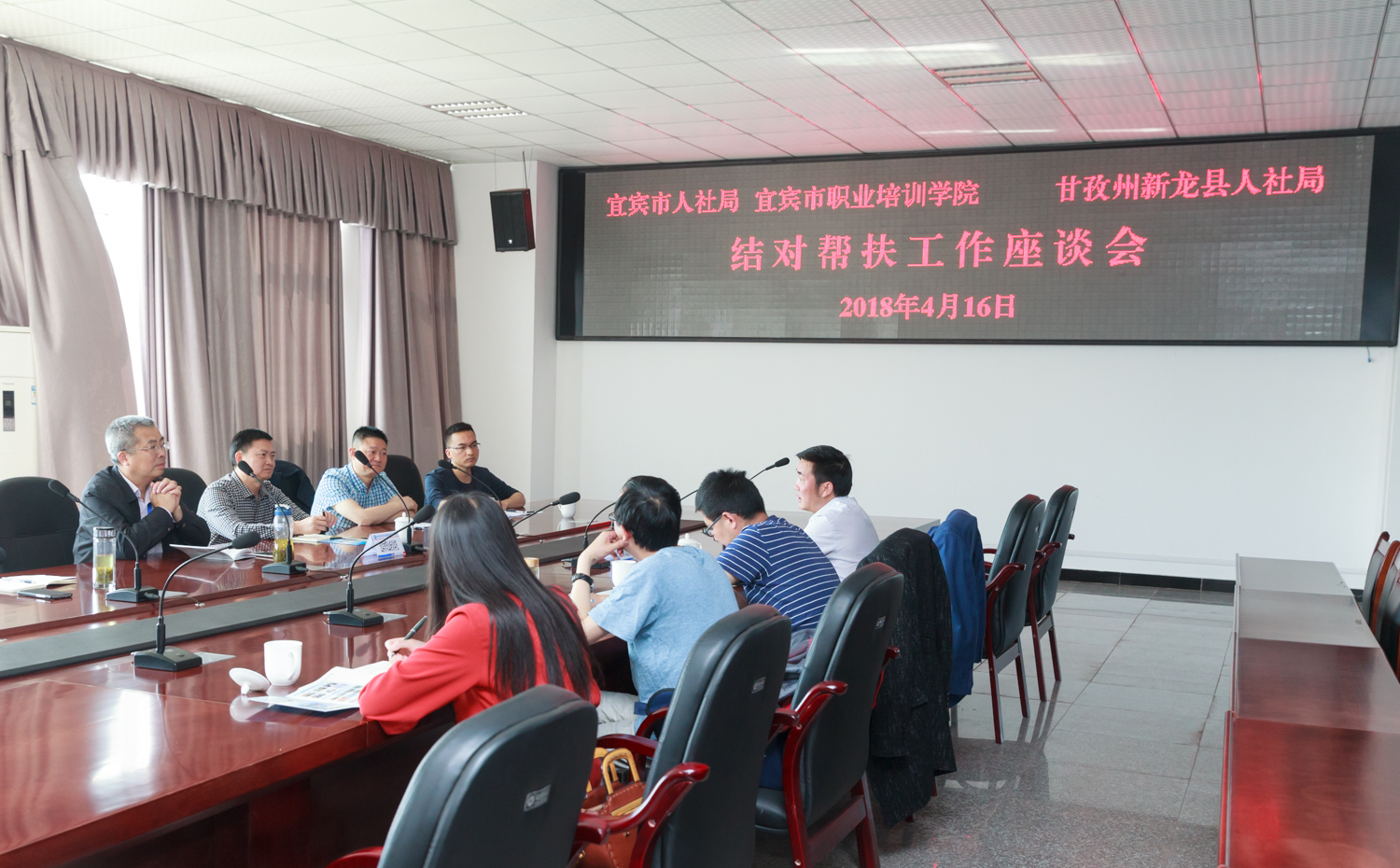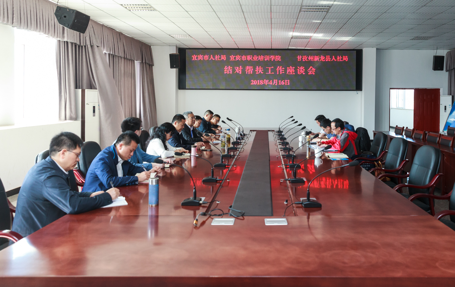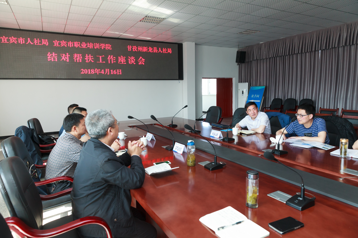 宜宾市人社局就业促进科杨永阶科长、职业能力建设科文晓军科长等也参加了随后举行的座谈会,与新龙县人社局进行了友好交流。甘孜州新龙县是我校宜宾市职业培训学院的“一帮一”结对帮扶县,也是宜宾市对口帮扶县,目前我市派有多名同志在该县开展扶贫工作。