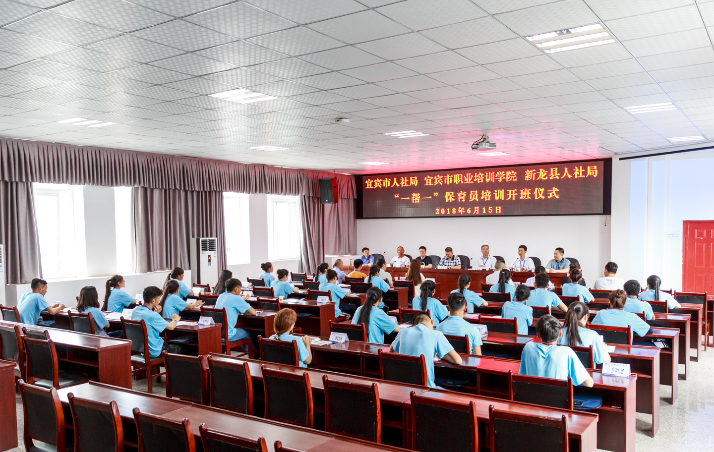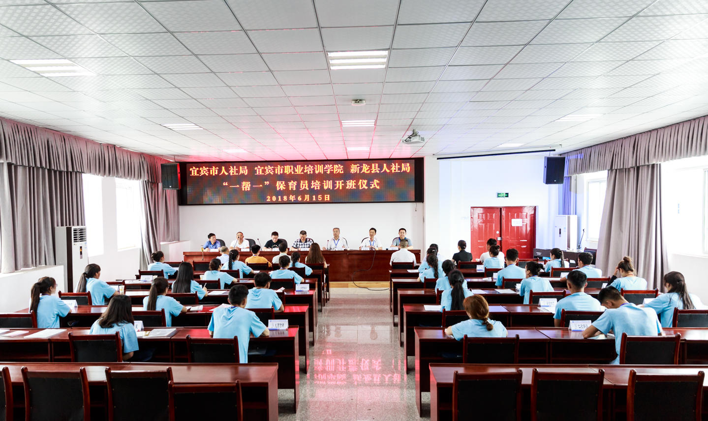 6月15日上午9时,宜宾市职业培训学院对口甘孜州新龙县“一帮一”保育员培训开班仪式在我校隆重举行,学校党委委员、纪委书记吴开泉主持会议,宜宾市人社局职业能力建设科科长文晓军、新龙县人社局副局长刘浩、新龙县教体局纪检组长翁嘎及培训项目负责同志、培训学员等40多人参加了开班仪式。