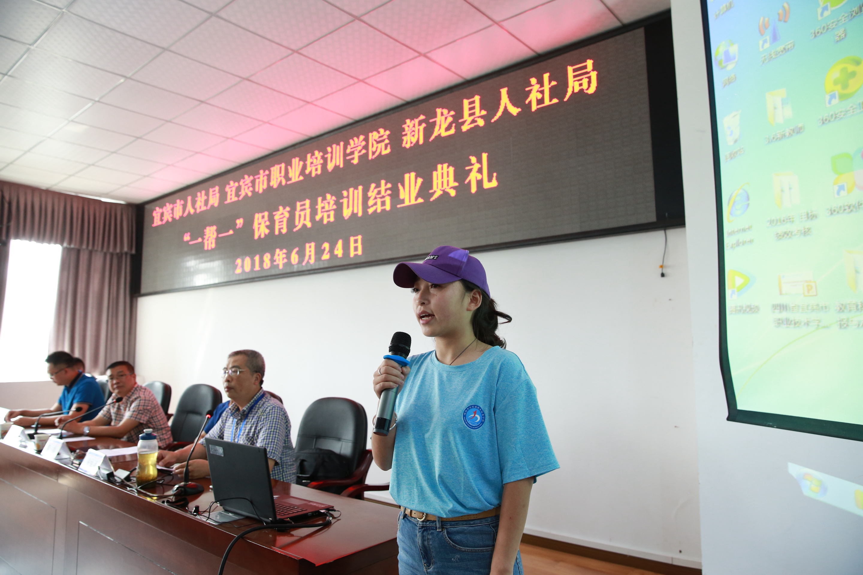6月24日下午,宜宾市职业培训学院对口甘孜州新龙县“一帮一”保育员培训结业典礼在我校举行,学校张学强副校长主持会议,市人才服务和就业促进局甘华锋局长、就业促进科李伟副科长、我校卿琳校长、新龙县人社局刘浩副局长、新龙县教体局纪检组长翁嘎,以及培训项目负责同志、培训学员等40多人参加了结业典礼。
