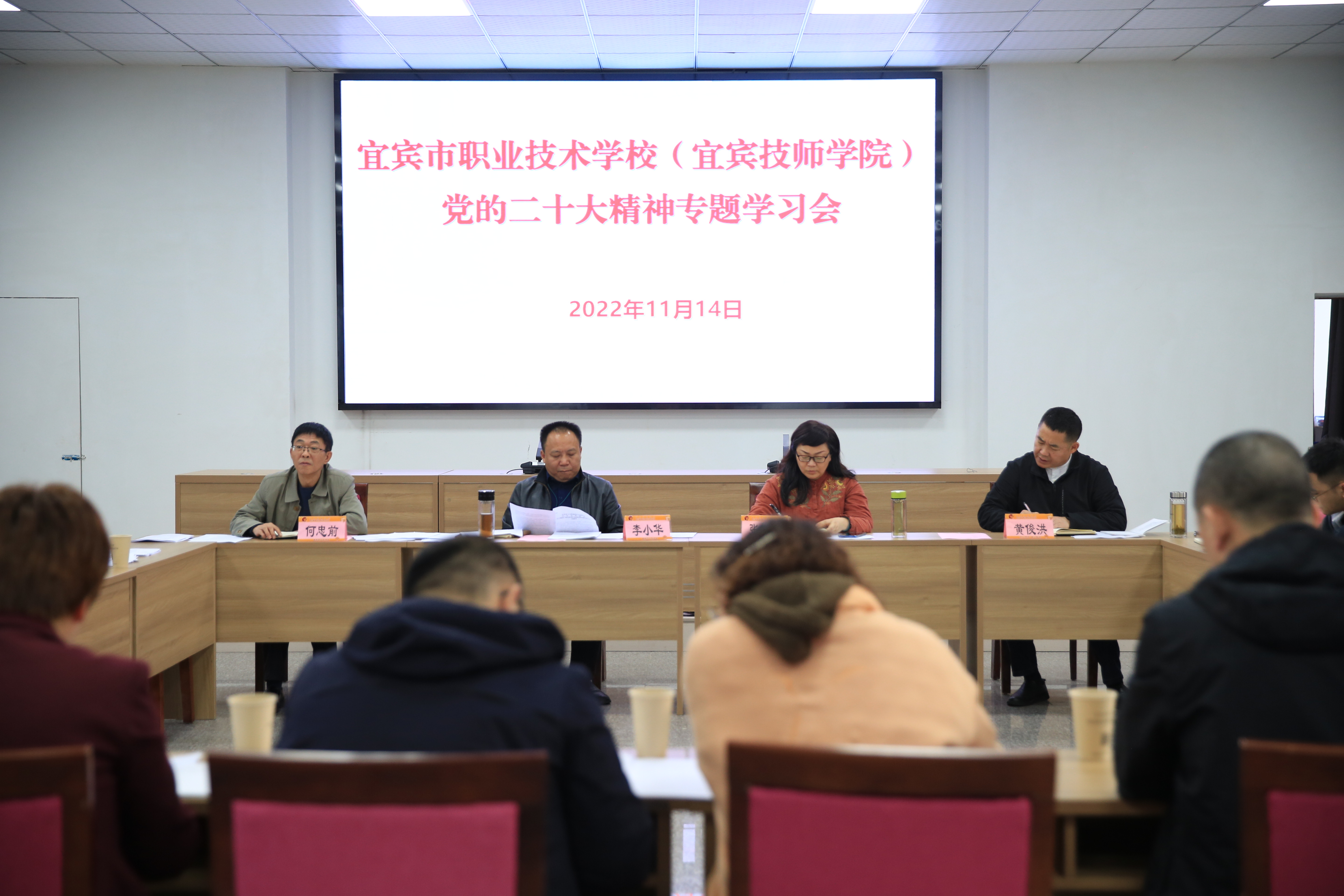 高举旗帜,凝聚力量 |二十大精神专题学习会11月14日,我校召开中心组学习(扩大)会议,以专题的形式学习党的二十大精神,党委书记李小华主持会议并讲话。 与会人员认真学习了习总书记在中共中央政…2022-11-15 来源:四川省宜宾市职业技术学校