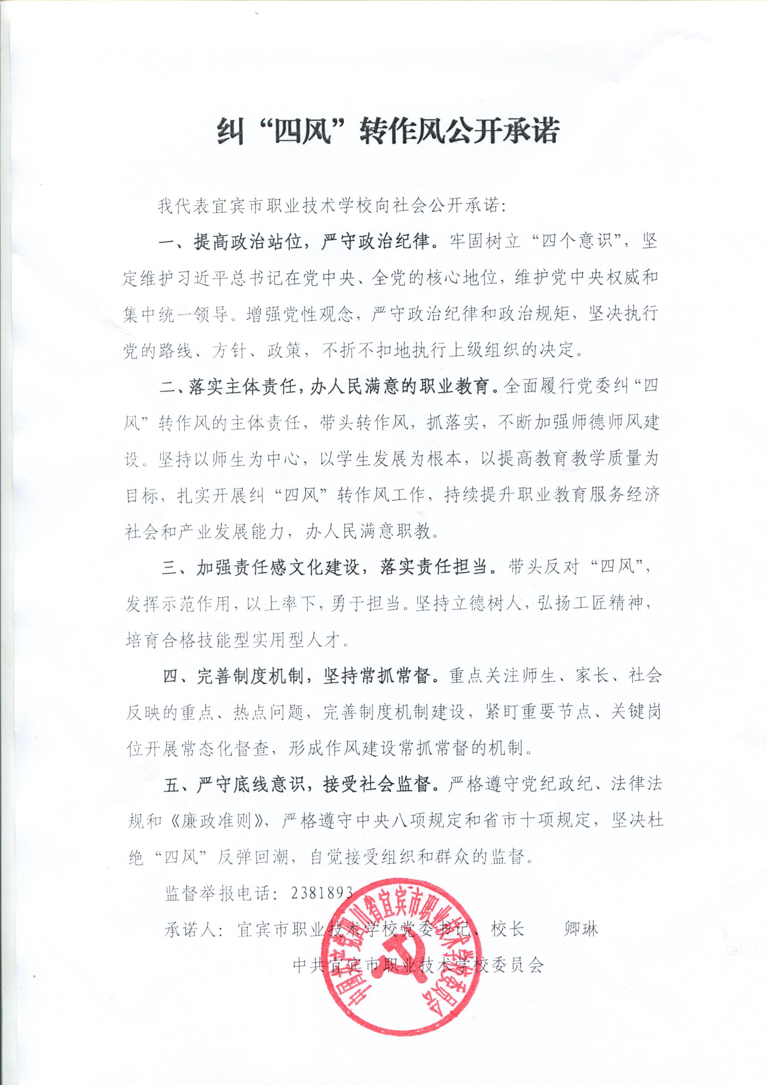 纠“四风”转作风公开承诺2018-06-27 来源:四川省宜宾市职业技术学校 -