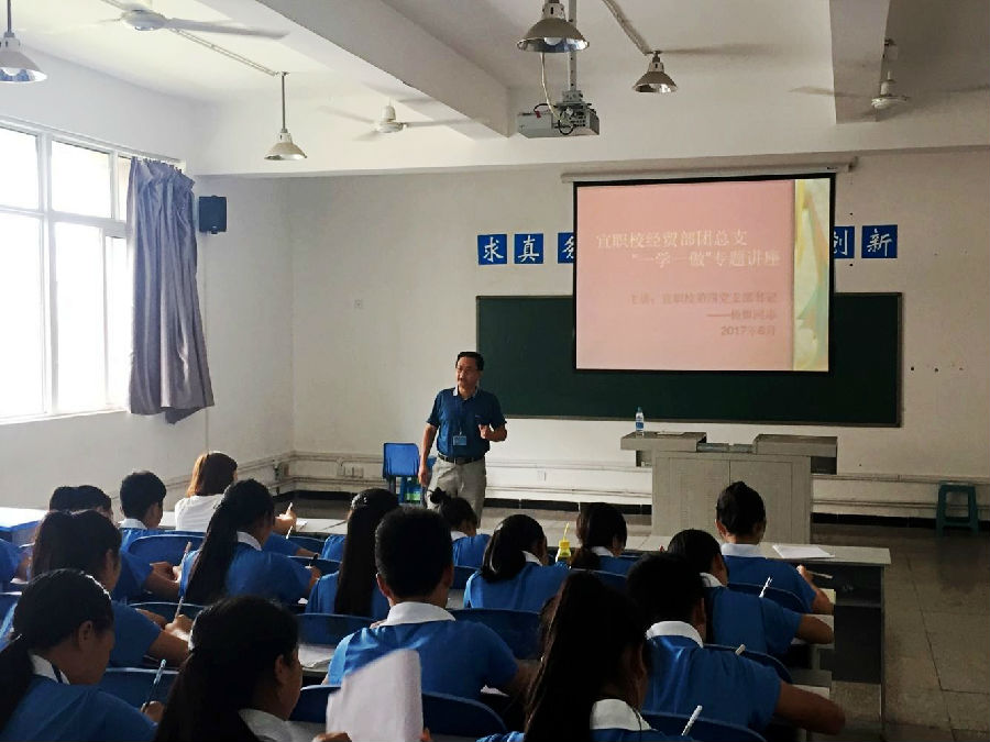 经贸部开展“一学一做”专题讲座为深化推进专业部“一学一做”学习教育,积极响应共青团中央在全体共青团员中开展“学习总书记讲话,做合格共青团员”即“一学一做”教育实践,经贸专业部团总支于6月开展了“一学一做”专题讲…2017-06-20 来源:四川省宜宾市职业技术学校
