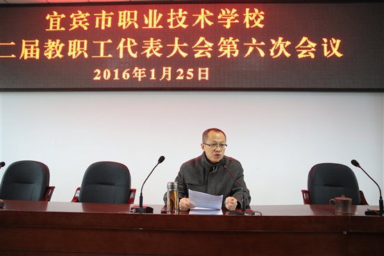 学校召开第二届教职工代表大会第六次会议2016年1月25日上午,学校第二届第六次教职工代表大会在乐业楼512会议室召开,教代会代表87人参加会议,17名列席代表列席了会议,会议由学校工会副主席尹红卫主持。全体教代会代表…2016-02-03 来源:四川省宜宾市职业技术学校 -