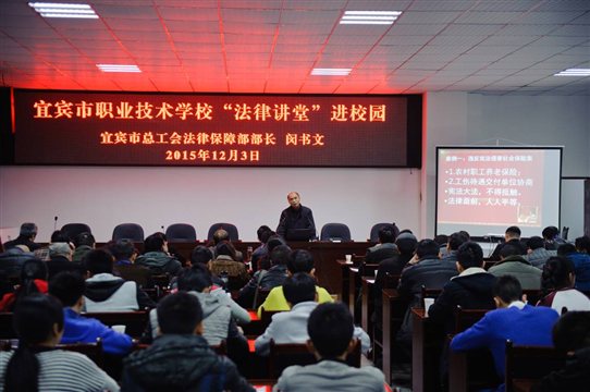 我校举办法律讲堂进校园专题讲座为了加强普法教育,增强师生员工的法制意识,在“12.4”国家宪法日暨全国法制宣传日到来前夕,宜宾市职业技术学校工会开展了“法律讲堂进校园”活动。该活动由学校工会主席吴开泉同志主持,…2015-12-07 来源:四川省宜宾市职业技术学校