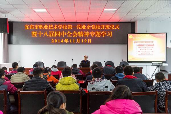 第一期业余党校隆重开班第一期业余党校隆重开班2014年11月19日下午,宜宾市职业技术学校第一期业余党校开班仪式分别在大湾校区和龙湾校区进行,党委书记卿琳参加了大湾校区的开班仪式并主讲第一个专题“学习党…2014-11-21 来源:四川省宜宾市职业技术学校 -