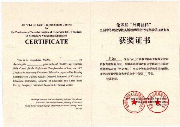 我校教师获得全国中职学校英语教师教学技能大赛二等奖第四届“外研社杯”全国中等职业学校英语教师职业化转型教学技能大赛总决赛于11月2日在深圳落下帷幕,我校经贸专业部范自力老师获得二等奖。 这是我校英语教师第二次参加比赛,去年我…2014-11-12 来源:四川省宜宾市职业技术学校